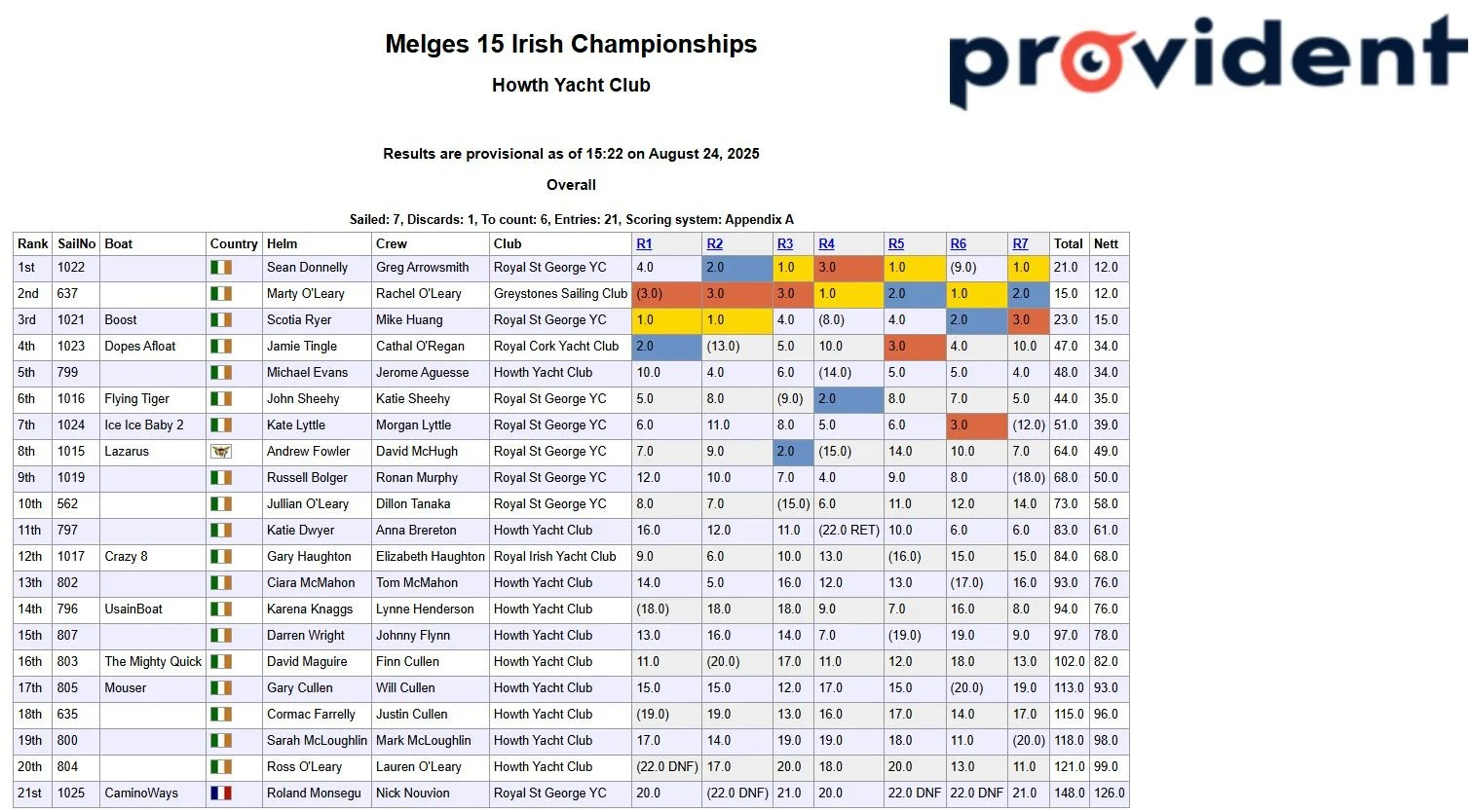 RSGYC's Donnelly & Arrowsmith win Irish National Championships